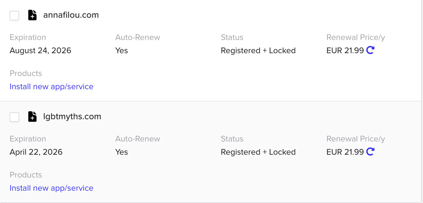 All that is great, but how does someone visit my website on the internet? I want them to type something like example.com into their browser and see my page. To do that, I need to buy the domain name “example.com”. I buy domains from companies known as domain registrars. iwantmyname.com is one such company and while I appreciated their no-nonsense minimalist approach for years, their prices have gone up significantly lately. So I switched to buying from Porkbun!